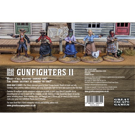 The miniatures are 28mm in size, made of plastic, and supplied unassembled and unpainted. Some modeling is required to assemble and bring your figures to life on the gaming table. This set is perfect for creating detailed and diverse gangs, suitable for Dead Man’s Hand or any other skirmish game set in the Wild West, offering a fully customizable and engaging experience for every player.