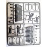 The kit also includes a single frame featuring just the wagon, without cover, hoops, horses, or crew. This option allows you to create unhitched wagons or wagons waiting for a team, providing additional variety for layouts and scenarios. The ability to choose between different wagon configurations makes the kit versatile, suitable for both players looking to represent complete convoys and hobbyists who enjoy modular and customizable gaming tables.