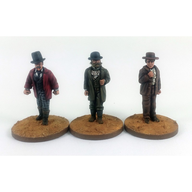 This set contains three 28mm metal civilian miniatures to populate your Dead Man’s Hand town. The models are supplied unpainted, sculpted by Darren Edwards, painted by Artmaster, and based by GEG. Each miniature is finely detailed, perfect for enriching your games with tension and narrative depth. The total weight of the set is 80g for postage purposes. Please see the Customer Service page for postage charges.