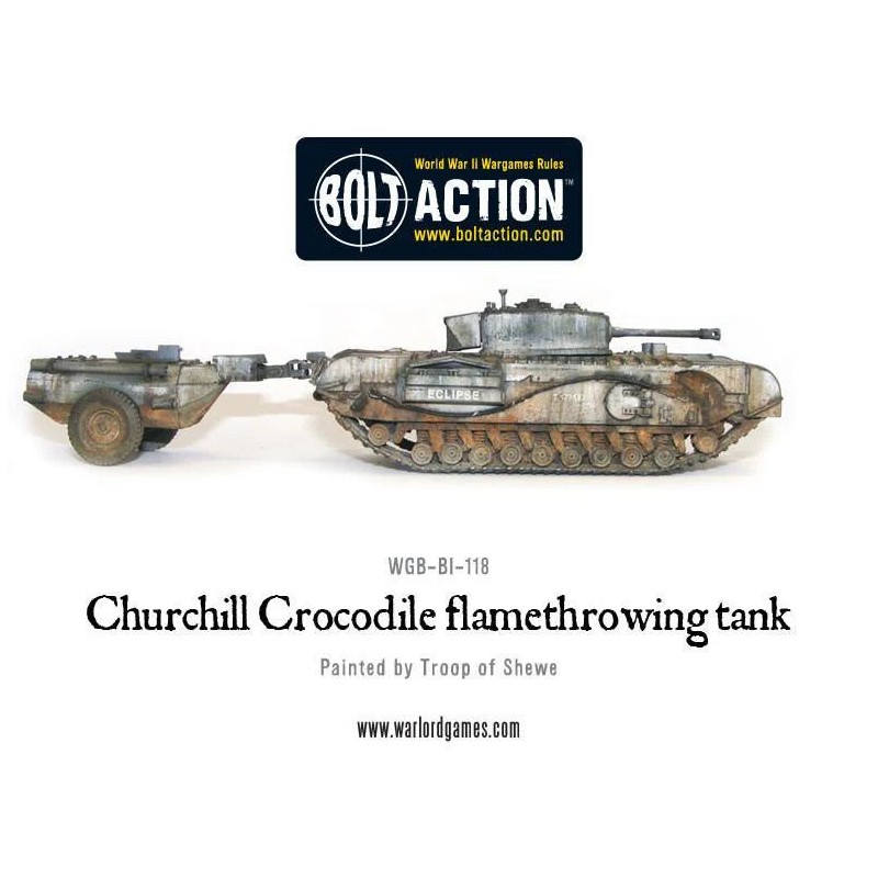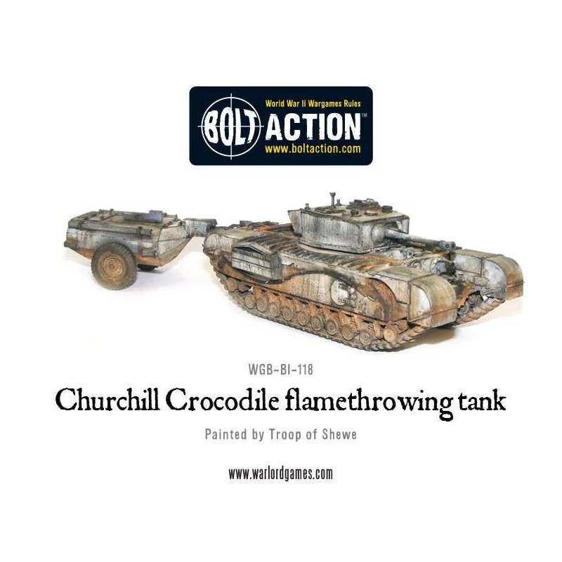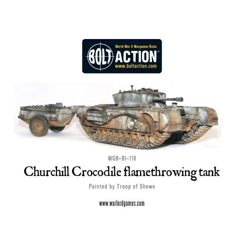 In Bolt Action, the Churchill Crocodile is classified as a super-heavy tank, armed with a medium anti-tank gun and a flamethrower, perfect for smashing through fortified enemy lines. It can also be fielded in Achtung Panzer!, the game of close-quarters tank combat, with its rules found in the core rulebook. The box also includes decals, an order die, and damage markers, giving you everything you need to bring this terrifying vehicle into your games.