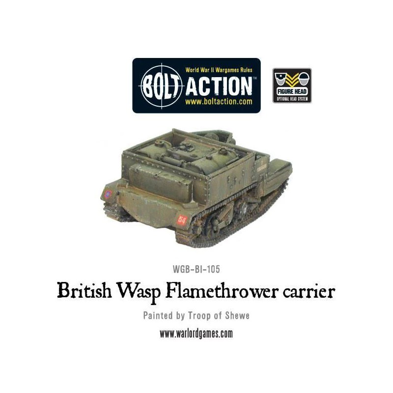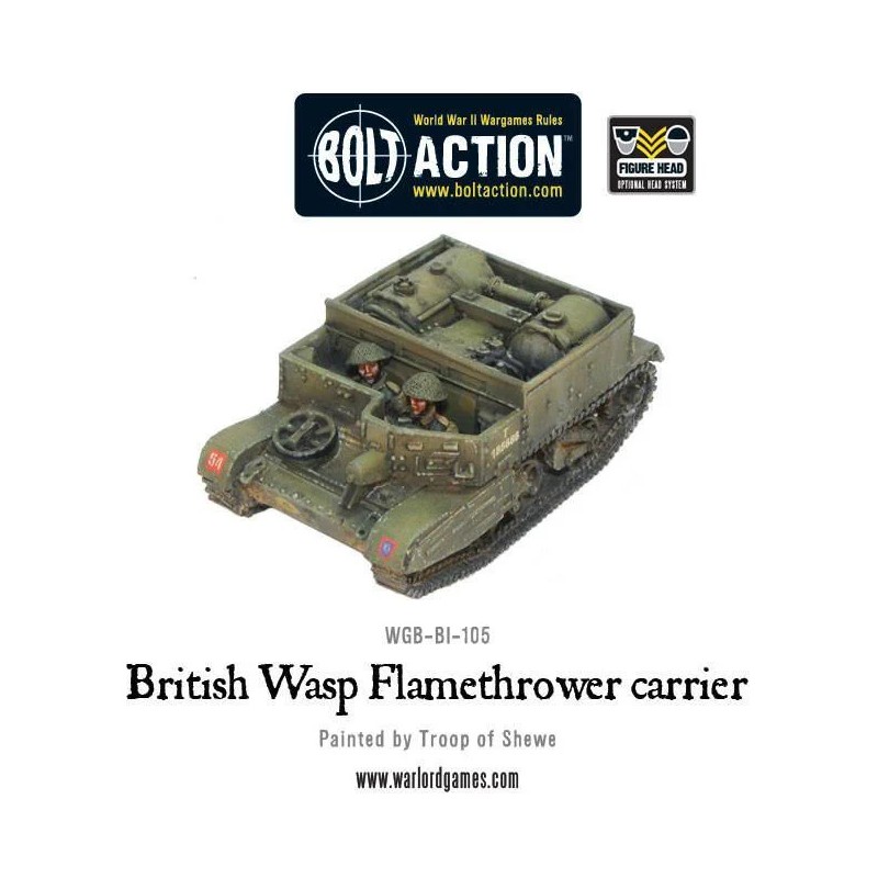 Based on the ubiquitous Universal Carrier, or Bren Carrier, the Wasp was a modified version equipped with a flamethrower, dreaded by enemy forces! These compact yet fearsome vehicles were deployed by Armoured and Infantry divisions, with up to six assigned to independent machine gun companies, though they typically operated in pairs for maximum battlefield impact.