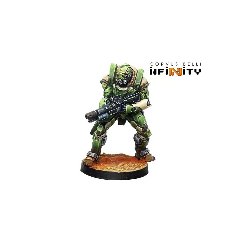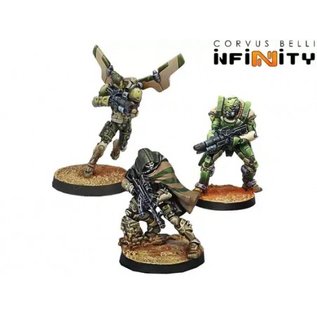 This set expands your Haqqislam Hassassin Bahram Action Pack (ref. 281427-1150) with powerful and versatile reinforcements. Included is a deadly Airborne Deployment trooper, capable of striking behind enemy lines, as well as two heavily armored infantry units designed to withstand punishment while delivering devastating firepower.