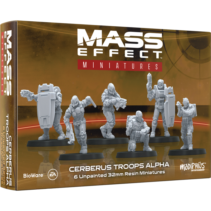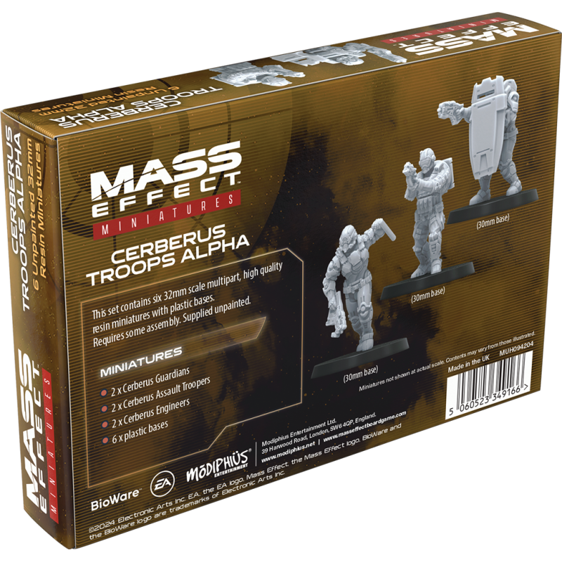 This box contains six miniatures representing units from the pro-human organization Cerberus: two Engineers, two Assault Soldiers, and two Guardians. Each figure features unique poses, adding dynamism and realism to your gameplay. They integrate seamlessly with the board game’s enemies, providing a more immersive and strategic experience.