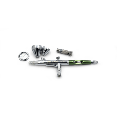 Designed to deliver maximum control and outstanding precision, this high-quality dual-action gravity feed airbrush is the perfect tool for both enthusiasts and professionals. Its self-centering nozzle system ensures smooth and consistent paint flow, allowing flawless finishes every time. The carefully matched needle and nozzle combination makes it capable of ultra-fine spraying, ideal for detailed work and projects that demand high accuracy, from modeling to illustration and customization.