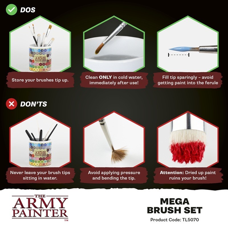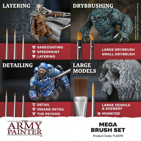 This complete set contains all the essential brushes from the Wargamer range, covering every stage of painting, from base coats to fine details, including drybrushing and speedpainting techniques.