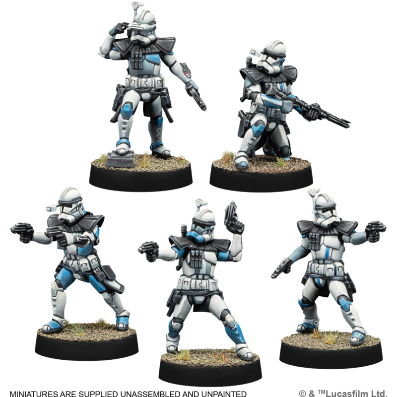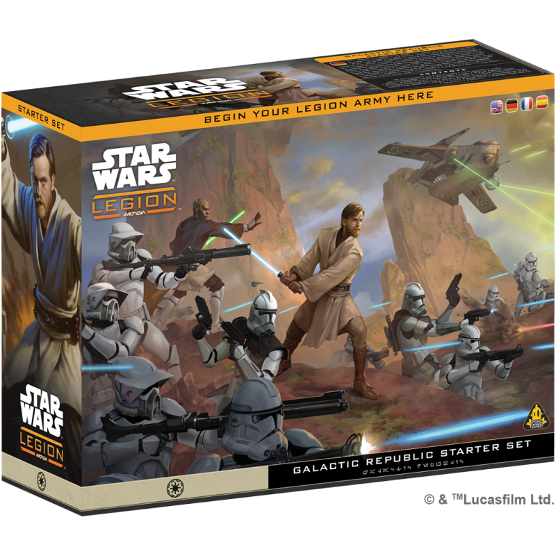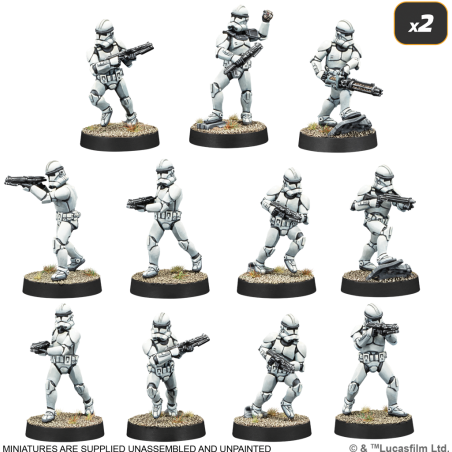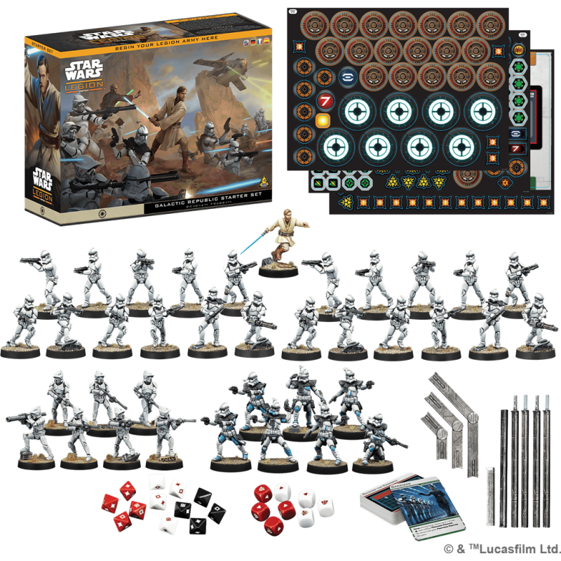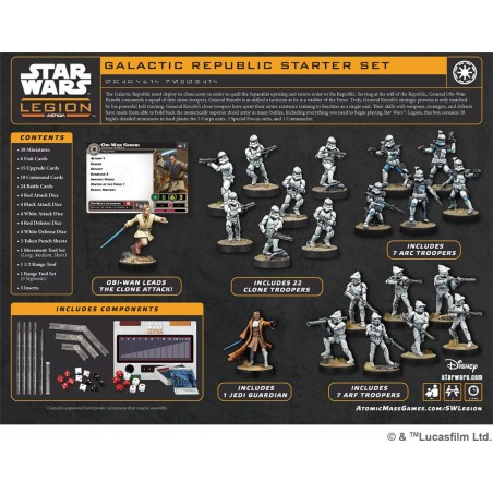 The set includes all the essential components for play: Unit, Command, Upgrade, and Battle cards, attack and defense dice, tokens, movement templates, range rulers, and information sheets. Each player requires their own Core Set to take part in the strategic ground battles of Star Wars: Legion. The miniatures are supplied unpainted and require assembly, offering hobbyists the chance to personalize every unit before leading them into battle under the banner of the Republic.