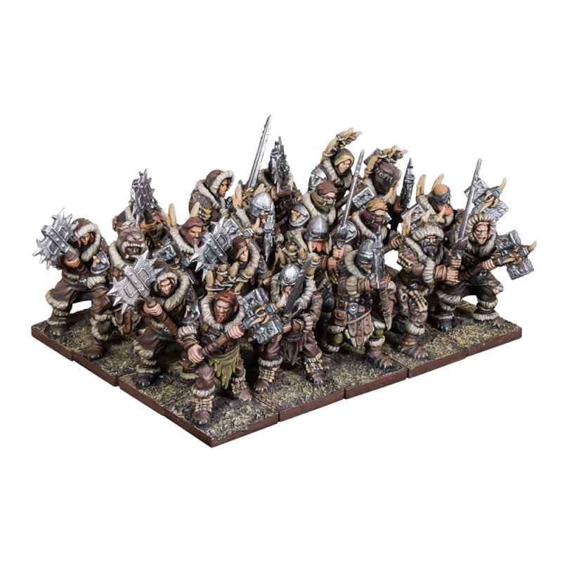 The Kings of War Northern Alliance battalion includes everything you need to start your Northern Alliance army, featuring 63 high-quality plastic miniatures. Each model captures the icy resolve and endurance of the northern people, united to defend their homeland against any threat. Designed to offer a balanced, powerful, and visually striking army, this set is perfect for players eager to embody the strength and discipline of the North.