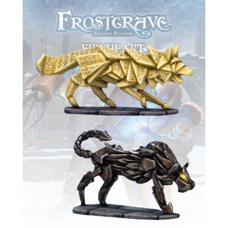 Construct dogs are a special type of small construct focused on speed. Although often considered pets created for practicing animation, they can be formidable fighters. This box contains one blade-dog and one construct dog, delivered unpainted and requiring assembly.