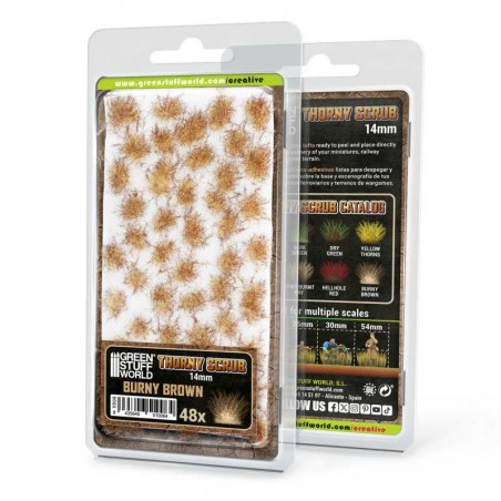 Application is quick and easy: remove the tufts from the packaging with tweezers and attach them using their self-adhesive base. For more complex or uneven surfaces, a small amount of glue or white glue ensures a permanent hold. Each set contains 48 bushes, 14 mm high, offering an ideal balance between quantity and realism to enrich your modeling projects and bring your miniature worlds to life.