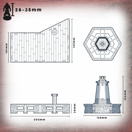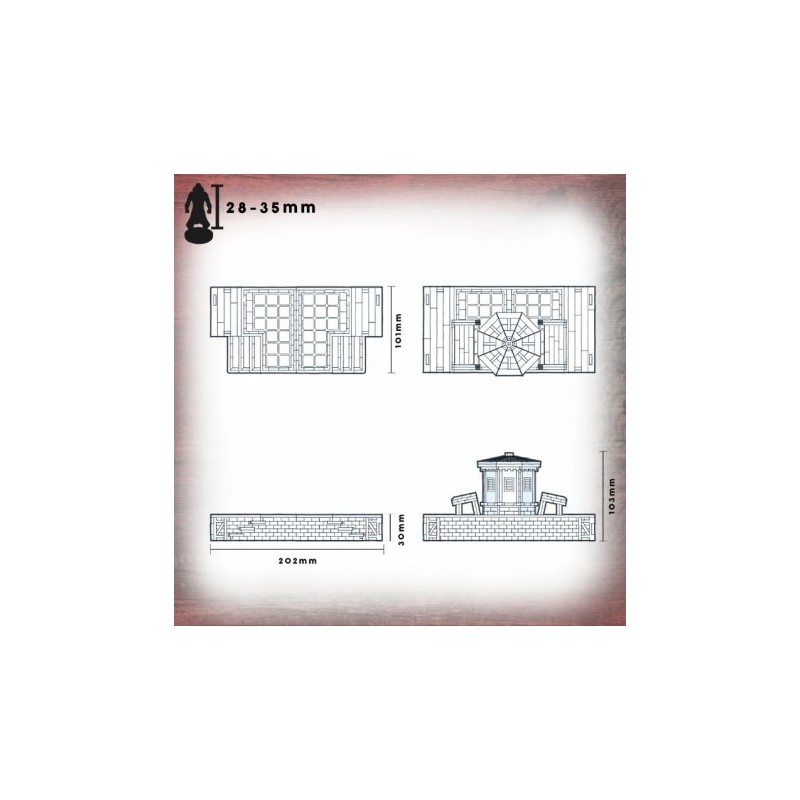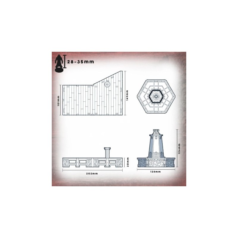 Easy to assemble thanks to its laser-cut MDF construction, this kit combines precision, sturdiness, and quick setup. The pre-colored panels eliminate the need for painting, allowing you to enjoy a visually striking and ready-to-play piece straight out of the box. Its walkways, elevated areas, and layered design offer excellent tactical opportunities, ideal for skirmish games that rely on vertical movement and varied cover options.
