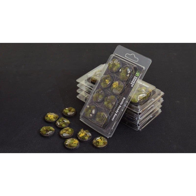 This pack contains 8 round Battle Ready Bases, 32mm wide, in a Highland theme.