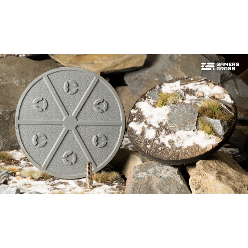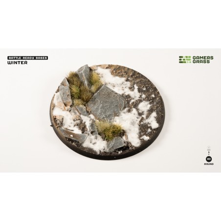 This pack contains 1 round Battle Ready Base, 90mm wide, in a Winter theme.