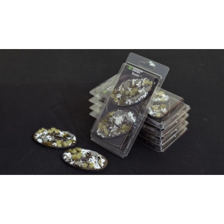 This pack contains 2 oval Battle Ready Bases, 90mm wide, in a Winter theme.