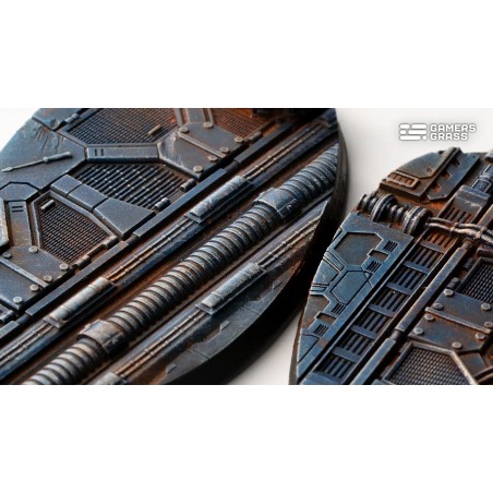 Rusty metal floors, exposed wiring, and fragments of broken equipment bring these bases to life with striking realism. Each detail is carefully crafted to immerse your miniatures in the industrial atmosphere of an abandoned spacecraft. With worn steel plates and visible circuitry, these bases tell the story of a long-deserted place, where silence echoes through damaged corridors and forgotten maintenance decks.