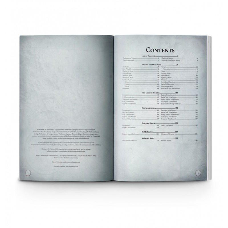 The hardback volume includes a rich Hobby Showcase featuring beautifully painted epic scale miniatures from the ’Eavy Metal team and talented hobbyists, accompanied by insights into how each army was collected and painted. A comprehensive Reference Section provides quick access to unit statistics and weapon profiles, perfect for use during fast-paced games. Please note that the Detachment rules found on pages 130–212 have been updated and replaced by the content in the Legions Imperialis – Liber Strategia book, available separately. Whether you are beginning a new force or expanding an existing collection, this rulebook is an indispensable companion for all Legions Imperialis commanders.