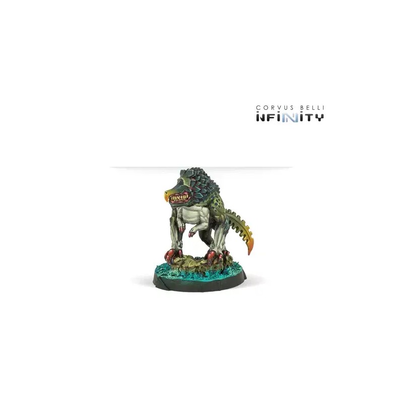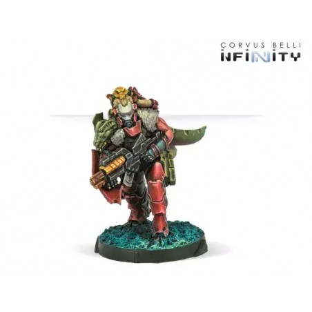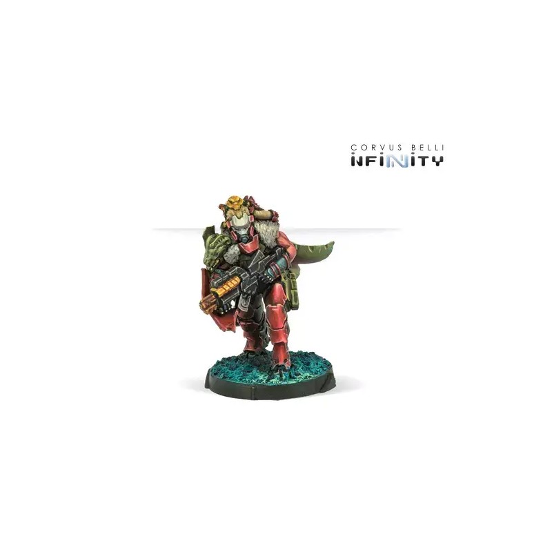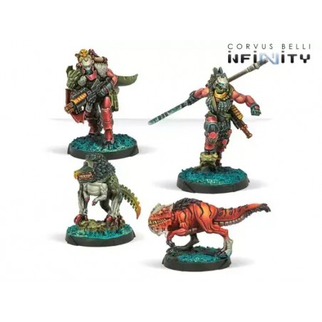 This box contains four miniatures: one Oznat with Vulkan Shotgun, one Tyrok Hunter with T2 Rifle, one Preta Sync, and one Skurgot Jawbrute. These units provide a complete and versatile team for Morat operations, reinforcing your Morat Aggression Forces Action Pack. They combine firepower, aggression, and specialized capabilities, ensuring a high strategic impact on the battlefield.