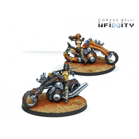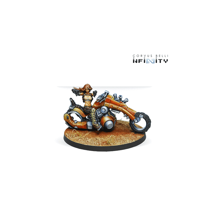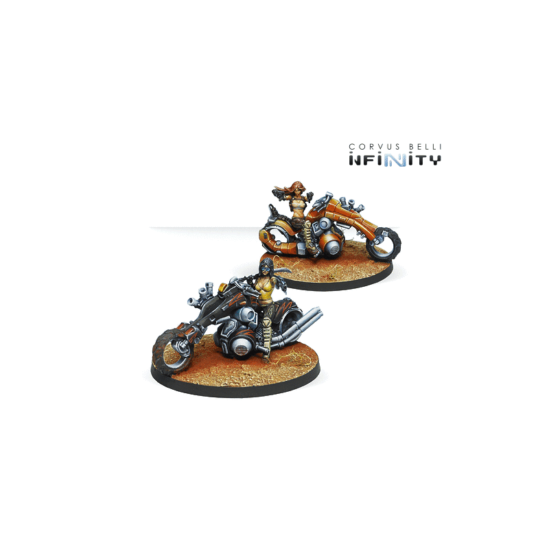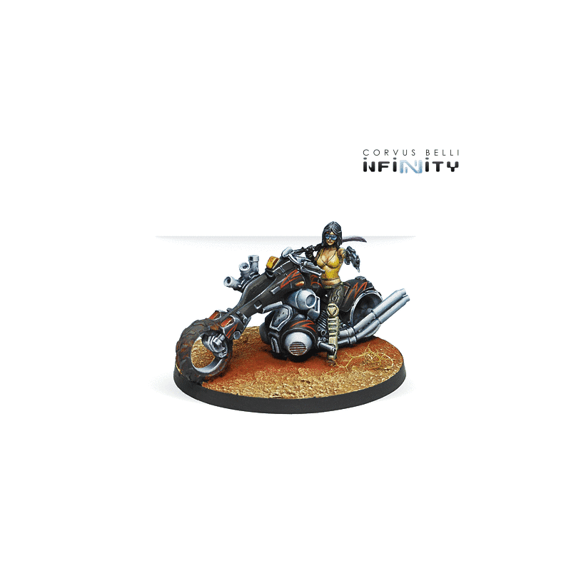 When the Nazarova twins roar across the battlefield on their motorcycles, they become an unstoppable force that dominates the terrain and catches enemies off guard. Their speed, coordination, and unique skills make them essential units for any Infinity army list. Adding Zamira and Zuleyka to your forces ensures immediate impact, constant pressure on opponents, and the ability to turn the tide of any skirmish.