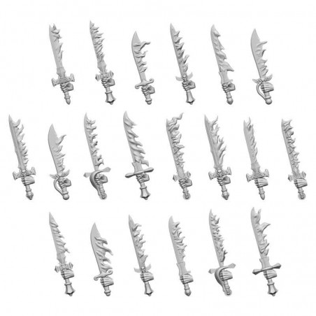 Crafted from high-quality ABS-like resin, these pieces provide durability and sharp detail, making them well-suited for adding flair to bases, dioramas, and 32 mm (1:48 scale) miniatures. Available in various shapes and sizes, these bits allow for versatile use—whether representing enchanted blades, ceremonial weapons, or stylistic upgrades that elevate the look of your fantasy forces.