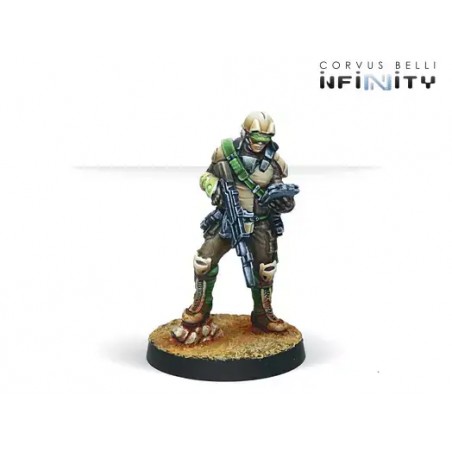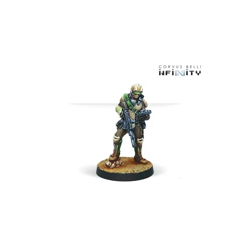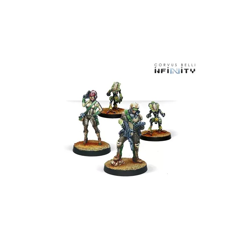 This box includes four miniatures: one Najjarun engineer, one Ghulam Doctor, and two Nasmat Remotes. It is an excellent addition to provide specialized troops to your Haqqislamite force in Operation: Blackwind, enhancing the versatility and responsiveness of your army on the Infinity battlefield.