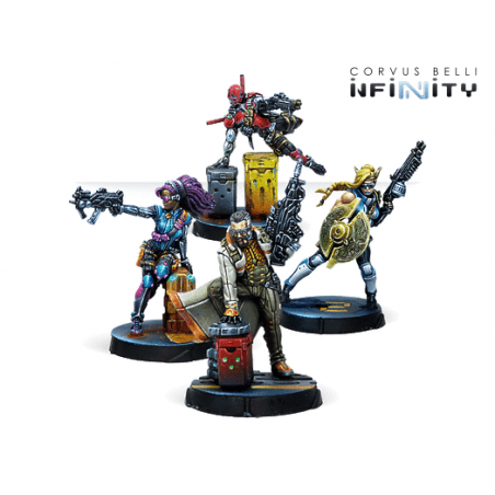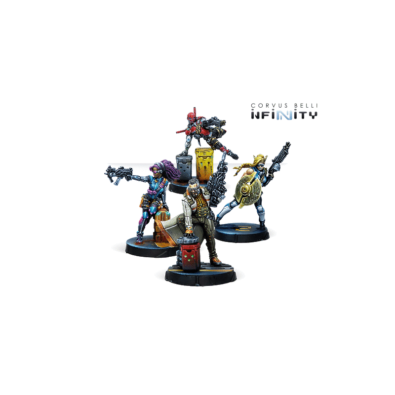 Infinity is a fast-paced skirmish miniature game set in an exciting science-fiction universe. This box features the most formidable group you can deploy: an elite squad of mercenaries from the Foreign Company, NA2 Sectorial Army. Each character brings unique skills to dominate the battlefield and provide exceptional versatility to your army.