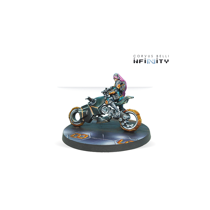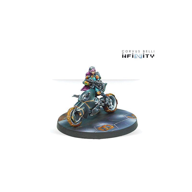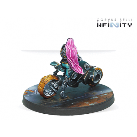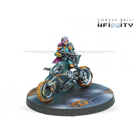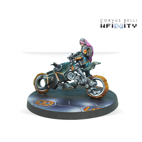 The blister contains a miniature representing a motorized Bounty Hunter. This miniature, ready to assemble and paint, captures all the details of an elite mercenary on her vehicle. Its dynamic pose and aggressive stance allow you to stage it in skirmish games or to complement your mercenary forces. Adding this miniature to your Infinity army strengthens your tactical presence and provides a high-quality model for both collections and gameplay.