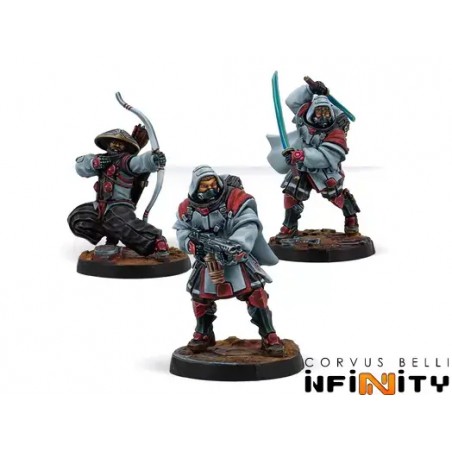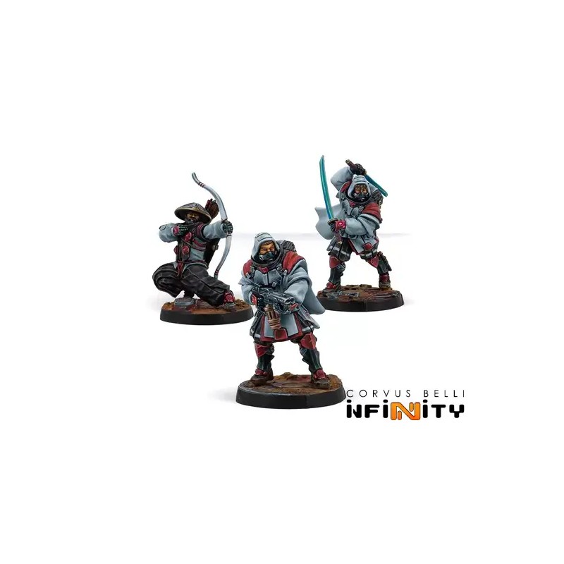 This box includes three metal miniatures from the Shindenbutai Sectorial Army: 1 Kyojin Killer with heavy flamethrower, 1 Kyojin Killer with CCW DA, and 1 Yamabushi Paramedic with tactical bow. The miniatures come unpainted and unassembled, allowing full customization. It is an excellent addition to expand your Shindenbutai collection and strengthen your JSA forces on the battlefield.
