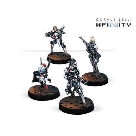 This box includes four carefully selected miniatures designed to enhance your Bakunin forces: one Riot Grrl with Combi Rifle and Blitzen, one Riot Grrl equipped with a Missile Launcher, one Riot Grrl with Boarding Shotgun, and one TinBot B. Together, these units provide a versatile toolkit, offering long-range firepower, close-quarters capability, and valuable technological support. Each model strengthens both your offensive presence and your ability to secure key positions on the battlefield.
