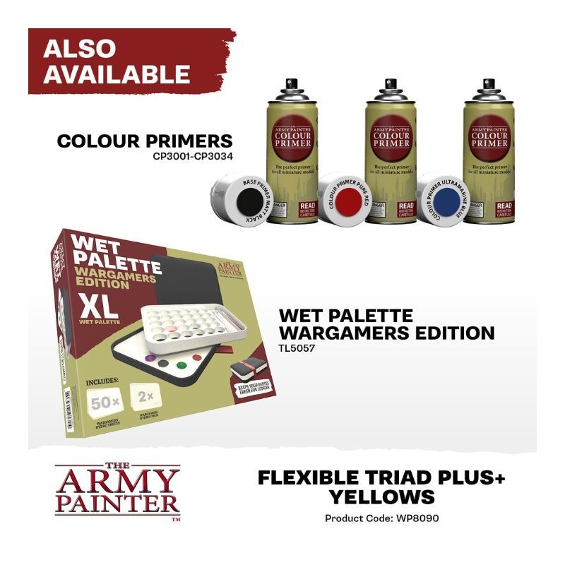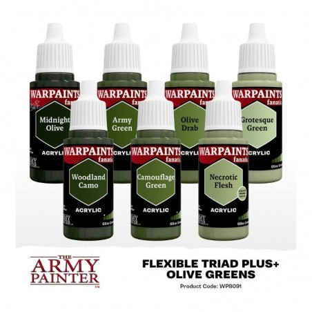 In addition to the complete Olive Greens flexible triad, the set includes Midnight Olive, an exclusive tone developed with John Blanche for The Army Painter’s Masterclass series. This complementary colour adds unique richness to your shadows and enhances earthy or tactical effects. Covering a wide spectrum from deep olive shades to light green highlights, this palette is ideal for painting uniforms, camouflage patterns, dense vegetation, forest dwellers or organic textures. Each colour is designed to perform equally well in realistic settings as in more stylised fantasy themes.