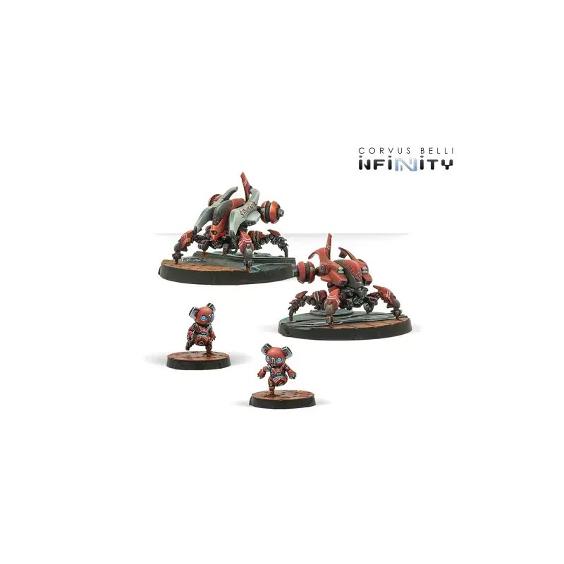 This box contains four miniatures: a Tsyklon armed with a Spitfire, a Lunokhod with a shotgun, and two CrazyKoalas. Their speed and firepower make them the perfect complement to any Nomad force. Whether reinforcing an existing squad or forming an independent unit, these Remotes add mobility, effectiveness, and tactical impact to your battlefield operations.