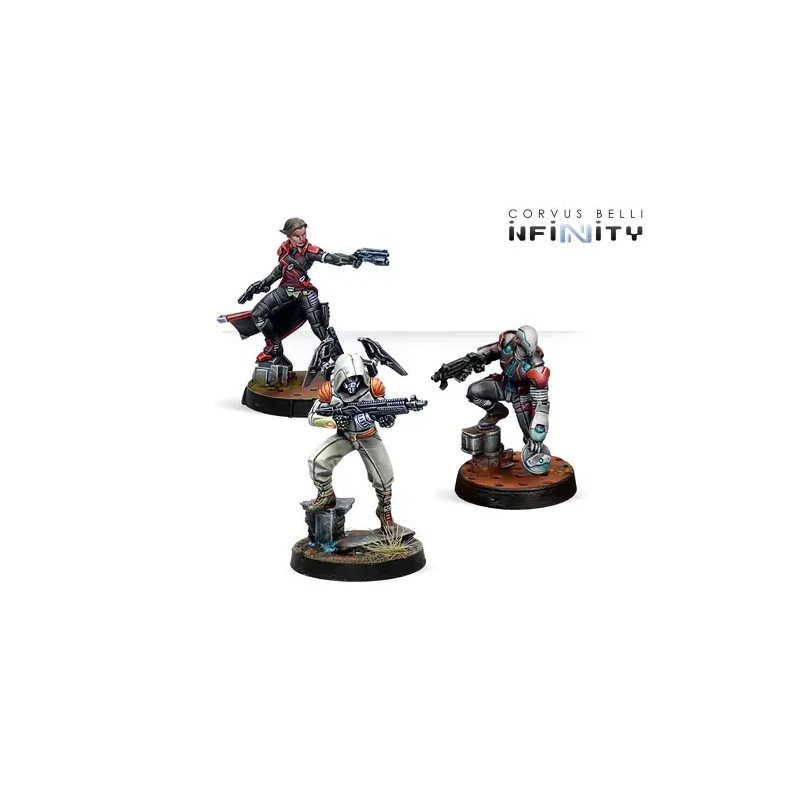 This box contains three miniatures: one Spektr with boarding rifle, Raoul Spector, and Jelena Kovač. Perfect for reinforcing your Nomad backup forces, it adds flexible and effective units to your collection, ready to intervene with speed and precision. These miniatures expand your tactical options and optimize battlefield strategies, ensuring a decisive presence in sensitive areas.