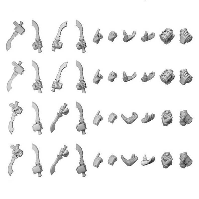 This comprehensive kit includes 44 hands, offering a wide range of conversion opportunities: 8 left hands with knives, 8 right hands with knives, 4 left hands with grenades, 4 right hands with grenades, plus 10 empty left hands and 10 empty right hands. With such variety, you can create highly expressive poses, from aggressive melee warriors to Chaos Marines preparing explosive assaults or carrying equipment. Printed in ABS-like resin, these bitz combine flexibility, durability and crisp detailing. Designed for 1:48 scale miniatures, they integrate seamlessly with DakkaDakka Store designs and are compatible with most sci-fi wargames and tabletop systems.
