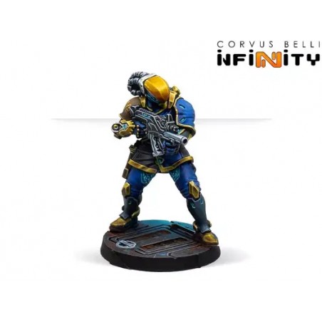 This box includes a Raveneye Officer miniature equipped with a submachine gun. It is the standard version of the exclusive miniature originally offered during the Infinity Raveneye book preorder. This figure is an excellent addition to your O-12 force from the O-12 Action Pack, providing extra tactical support and expanding your operational options. The miniature comes unpainted and unassembled, ready to join your collection and enhance your game scenarios.