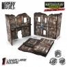 Made from durable MDF wood, this pre-painted terrain requires an initial assembly using PVA glue, which is recommended to ensure flexibility and durability during repeated folding. The reversible assembly allows you to choose a left- or right-hand L configuration to suit your mission layout, remaining fixed once glued. Optional pre-cut wall sections allow quick customization, whether you prefer intact walls or visible battle damage. A terrain solution that combines competitive functionality, strong visual appeal, and effortless transport.