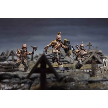 Selected for their controlled aggression and exceptional athleticism, the Prussian Stosstruppen represent the pinnacle of assault infantry. These soldiers are trained to operate at close quarters, where coordination and speed are decisive factors. On the battlefield, they embody a disciplined and methodical force, capable of turning raw violence into precisely executed maneuvers. Their presence inspires fear in the enemy and confidence among allied troops.