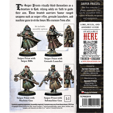 On the battlefield, this unwavering faith manifests as devastating effectiveness. Sniper priests are able to wield a wide range of weapons with remarkable accuracy, whether using sniper rifles to eliminate high-value targets at extreme range, heavy automatic weapons to suppress and control large areas, or even grenade launchers to dislodge entrenched enemies. Their adaptability allows them to respond to diverse tactical challenges, providing reliable and flexible fire support to allied forces in virtually any combat situation.