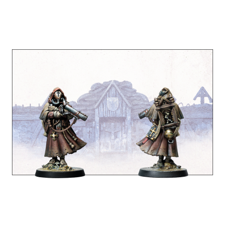This box contains two finely detailed miniatures designed to represent these unique combatants. Each miniature can be assembled with different heads, weapons, and equipment, offering a variety of customization options. The miniatures are supplied unpainted and may require some assembly, giving hobbyists the opportunity to personalize their models. Printed materials are provided in English. This set is an excellent addition to any New Antioch force seeking to enhance its long-range firepower with highly thematic and effective units.