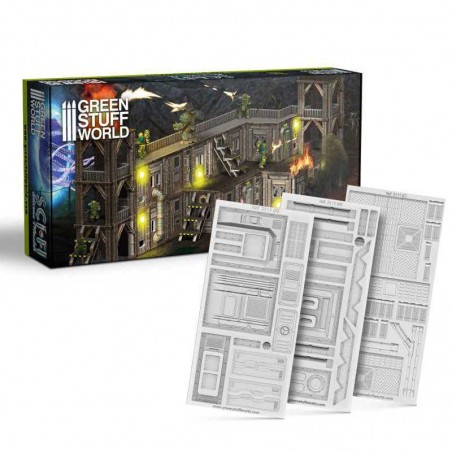 Fully compatible and complementary with other Green Stuff World hobby products, these molds can be combined to achieve highly detailed and cohesive terrain setups. The use of acrylic resin is strongly recommended for best results, along with scrapers to remove excess resin or putty without damaging the molds. This set includes three 6 × 12 cm molds filled with elements perfectly suited for 1:48 scale terrain, making them ideal for traditional wargames, including Warhammer®-style systems.