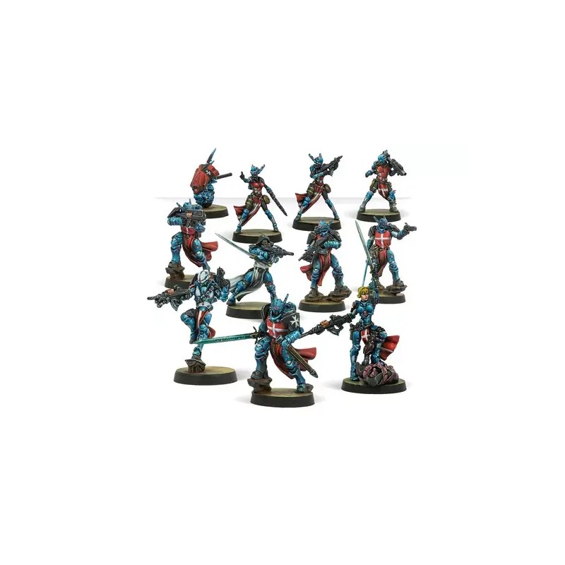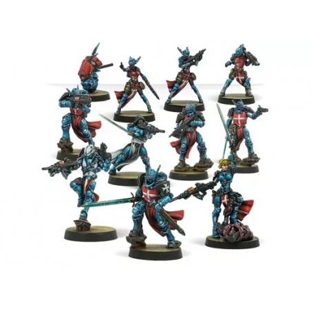 This box contains 11 miniatures for the PanOceania Military Orders sectorial army, offering a wide range of profiles to create versatile army lists. It includes: a Hospital Knight with HMG, a Hospital Knight with Boarding Shotgun, a Hospital Knight Medic, a Hospital Knight with DA CCW, a Crusader Brother with MULTI rifle, an Order Sergeant Hacker, an Order Sergeant with COMBI rifle and Auxbot, an Order Sergeant with Heavy Rocket Launcher, a Black Brother with MULTI rifle, and the charismatic leader Jeanne d’Arc with AP CCW. Perfect for starting a collection or reinforcing your army, this set provides a solid foundation to explore the full potential of the Hospital.