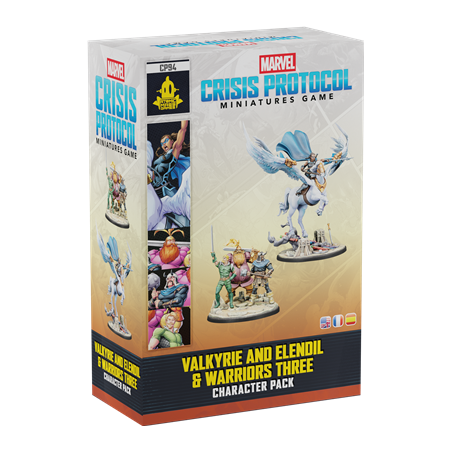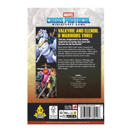 This Marvel: Crisis Protocol™ pack adds two powerful miniatures to strengthen your Asgardian squads. Valkyrie, born under Odin’s lightning and trained in combat from youth, rides her mount Elendil across the battlefield, striking enemies and clearing the way for heroes like Thor. Her mobility and strength make her a formidable frontline fighter or a tactical harasser.