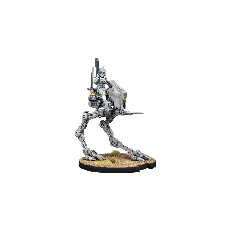 Designed to maintain constant speed across any terrain, the AT-RT moves effortlessly through obstacles and difficult ground. Its agility allows it to outflank enemy lines and overwhelm opposing battle droid formations. Previously released under an earlier reference, this miniature now returns with cards updated to current rules, ensuring smooth integration into your games. The included Unit and Upgrade cards provide new tactical options to customize your walker and optimize its battlefield performance.