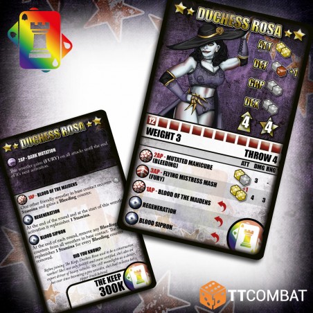 Rosa also possesses unique abilities to support her allies. By distributing her Maiden’s Blood, she heals allied wrestlers while giving them a bleeding counter, allowing her to regain strength and stay active during combat. Her special move, Dark Mutation, reveals her darkest side and unleashes a storm of attacks with Fury, giving her the ability to dominate the ring and control the pace of battle.