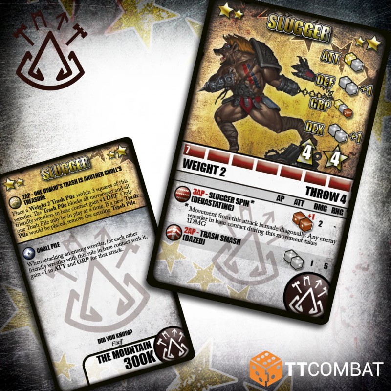 Its special attacks, the spectacular Trash Mash Turnbuckle and Slugger Spin, perfectly showcase its ability to strike massively while moving strategically. Slugger Spin allows it to move diagonally while hitting anyone in its path, offering devastating efficiency in chaotic fights. Additionally, Slugger carries a massive pile of trash that other Gnolls can use to boost their defense, giving the pack a tactical advantage.