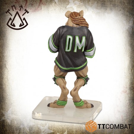 The mere presence of Dogg Meat disrupts nearby enemy wrestlers, reducing their AP and highlighting his central role in the pack’s strategy. This kit includes a resin figure, a character card, and a clear acrylic base. The bases come with a colored protective film that must be removed before assembly. The figure is supplied unpainted and unassembled, requiring careful cleaning and assembly. Small gaps may need filling for a flawless finish, making this model an essential addition for collectors and players seeking intense combat action.