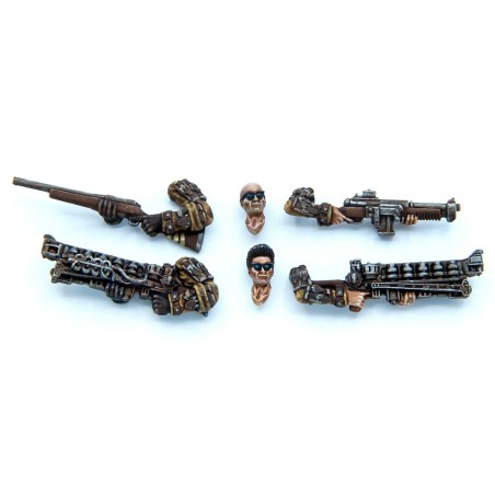 The Railroad Operatives set allows you to add iconic heroes and liberators from the Railroad faction to your games. The miniatures include Glory and Deacon, along with four Railroad Heavies, two of which have additional weapon options. Each miniature is highly detailed and comes with scenic bases, enhancing both the aesthetic appeal and immersion of your tabletop battles.