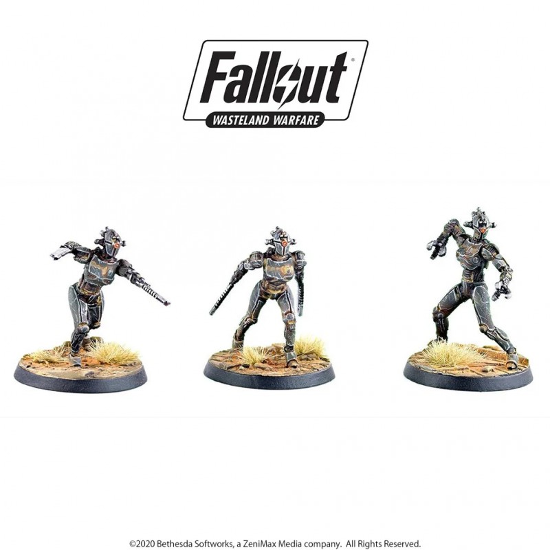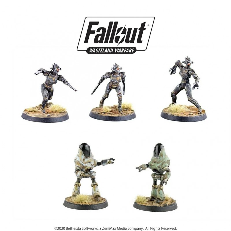 This boxed set contains five high-quality 32mm scale resin miniatures: three Assaultrons and two Protectrons, each with a unique scenic base, perfect for expanding your Fallout: Wasteland Warfare games. The miniatures require simple assembly and are supplied unpainted. Cards are not included, but unit and weapon cards are available for free download, or can be obtained with the Raiders Wave Expansion Card Pack. The scenic bases provide immersive setups and enhance the post-apocalyptic atmosphere of your battles.