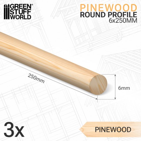 This wood features a light yellow tone with a subtle natural grain. It polishes easily and readily accepts varnish or stain. For painting, applying a primer or pore sealer is recommended, especially when using acrylic paints, to achieve a smooth and even finish. The set contains three rods measuring 6 x 250 mm, providing a strong and flexible foundation for your modeling and decorative projects.