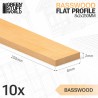 It features a light cream color, nearly uniform, and polishes, varnishes, and stains very easily. For painting, applying an acrylic primer is recommended, especially when using acrylic paints, to achieve a smooth and even finish. The set contains ten pieces measuring 8 x 250 mm, providing a solid and flexible foundation for your modeling and decorative projects.