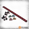 The scenery includes three buildings, seven obstacles, a bridge, and a gondola, along with a double-sided foldable paper mat measuring 24 inches by 24 inches. The miniatures are unpainted and require assembly with plastic glue on included circular bases. Tokens, dice, and a measuring ruler allow precise gameplay. Carnevale combines strategy, action, and storytelling to deliver an immersive and varied experience for fans of three-dimensional skirmish games.