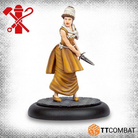 Its agents hide in plain sight, protecting citizens, but only for the right price. This box is a perfect starting point for a Guild gang. It includes a fast and deadly Capodecina, a precision barber, a brutal butcher, and two citizens loyal to the faction. The Guild focuses on strategic placement of characters, powerful command abilities, and leveraging numbers to their advantage.