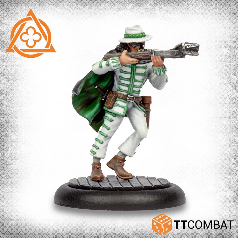 This box contains a complete Gifted gang. The Gifted can be used as a mercenary faction, and any member can join another gang to provide extra firepower. The fearless Il Capitano, the authoritative Il Dottore, the narcissistic Colombina, the vengeful Brighella, and the murderous Pantaleone can also form a standalone gang, offering players multiple strategic and narrative options.